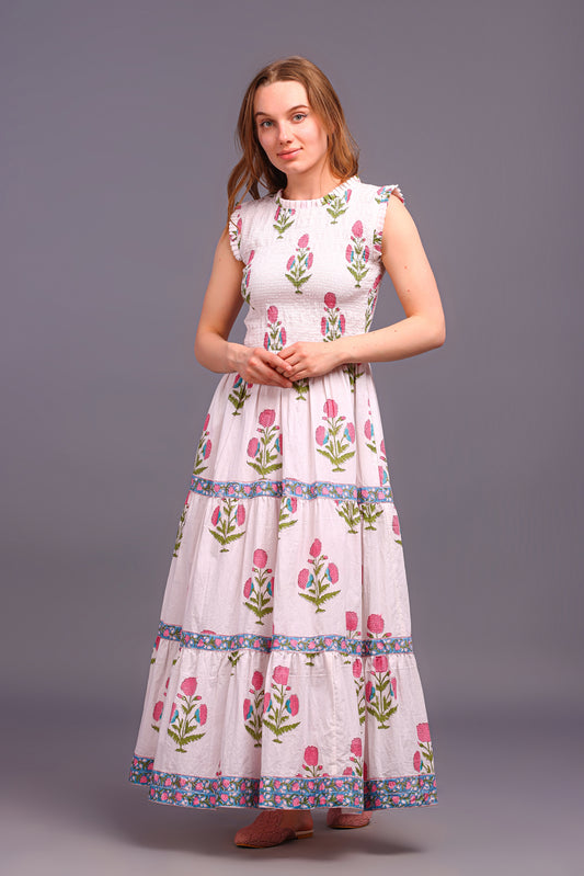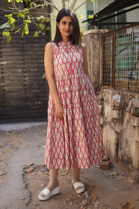 Handblock Print Cotton Dress, Women Cotton Summer Dress, Block Print Dress, Cotton Tier Dress, Printed Cotton dress